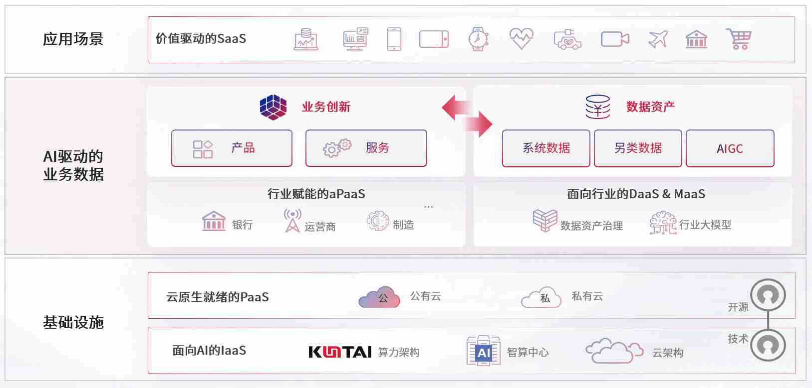 数字时代,,,,围绕企业数字化转型的关键要素,,RB88数码开创性的提出数云融合战略和技术体系框架,,,,着力在云原生、、数字原生、、、AI原生和信创产业上架构产品和服务能力,,为处在不同数字化转型阶段的快消零售、、汽车、、、金融、、医疗、、、、政企、、、教育、、、运营商等行业客户提供泛在的敏捷IT能力和融合的数据驱动能力,,构建跨界融合创新的数字业务场景和新业务模式,,,助力企业级客户建立面向未来的核心能力和竞争优势,,全面推动社会的数字化、、智能化转型升级。。。